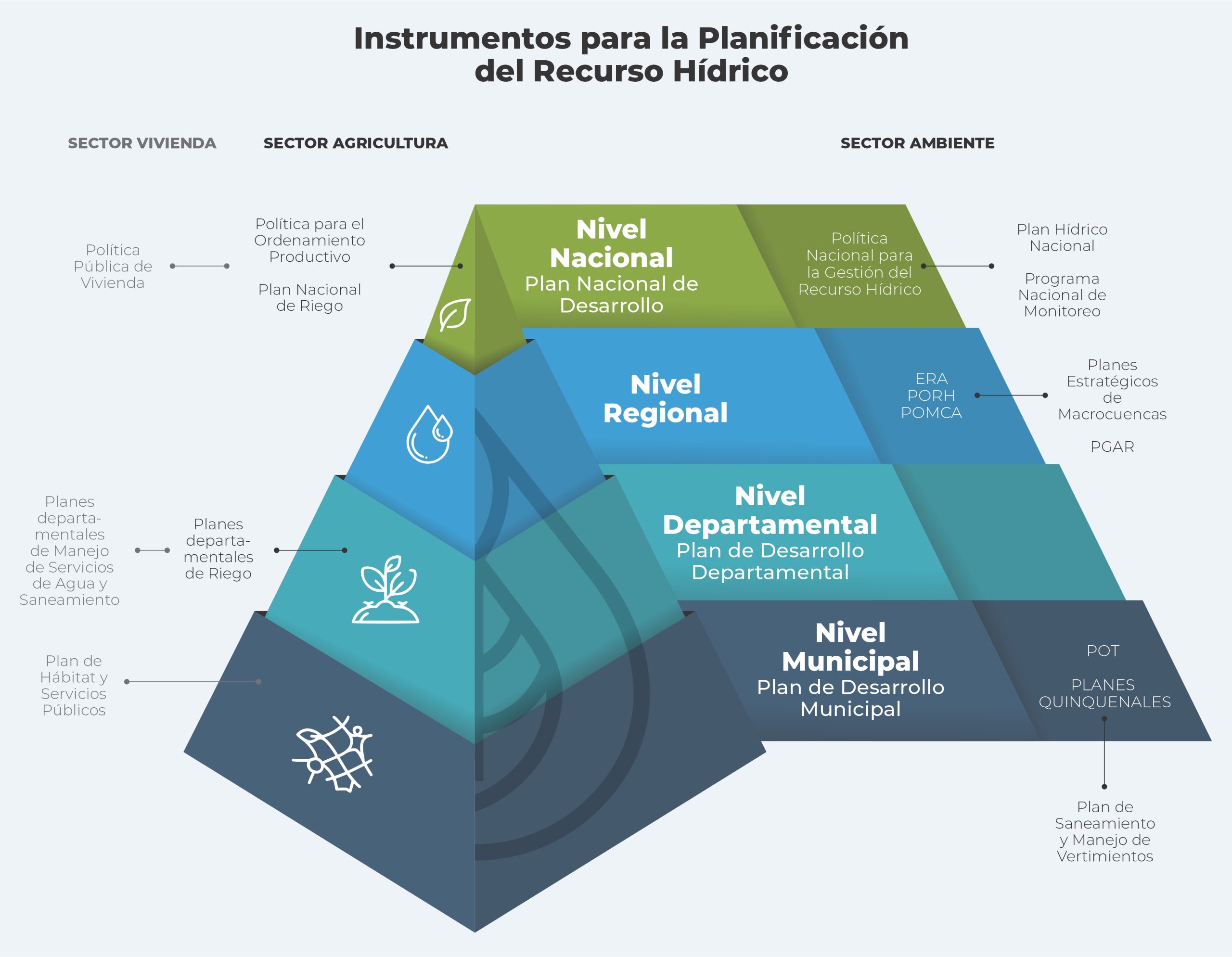 En la siguiente ilustración se sintetizan los principales instrumentos de planificación y gestión del recurso hídrico para los sectores vivienda, agricultura y ambiente, que inciden en la idea del proyecto.